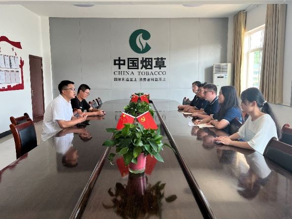首先,本调研队在洛南县城关烟站及烟站管辖的烟地、示范田进行了与当地烤烟种植与收购和产业发展相关的调研、交流和学习。商洛市烟草公司洛南分公司的黄经理在座谈会上和我们分享到:烟草经济是专卖体制下的计划经济,全订单的生产方式降低了市场风险,富农的同时也提供了大量的就业岗位,帮助解决了许多就业问题。烟站作为烟草公司的基层服务点,提供跟踪管理服务。此外,党建在业务融合中发挥着重要作用,党支部在整个产业过程中全程参与,并充分发挥主导、推动、引领和示范作用,在基层工作的党员模范先锋同时也是技术能手,时刻践行着“发展烤烟产业,服务地方百姓”的使命。