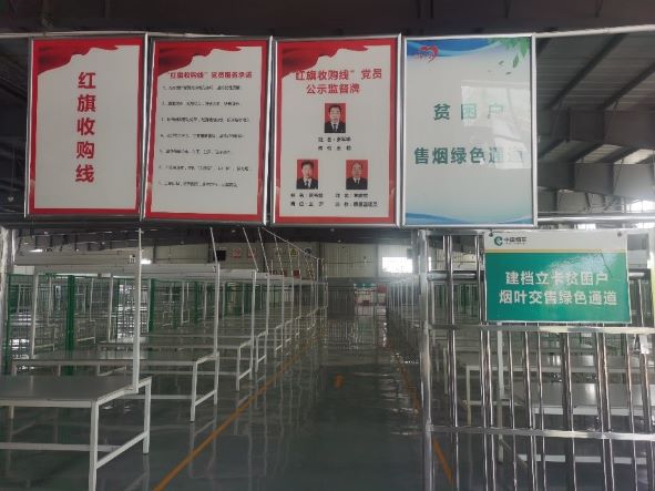 城关烟站位于洛南县四皓街道办抚龙湾社区,主要负责四皓、城关两个街道办烤烟生产技术指导和烟叶收购工作,是湖南中烟“芙蓉王”基地单元中心管理站。烟站职工办公生活区、烟叶收购区和烟叶仓储区三区分离,收购区依次划分为烟农等候休息区、专业化分级区、定级区及解码过磅区。收购区设置了贫困户烟叶交售绿色通道及发挥党员先锋模范作用的“红旗收购线”,不仅有效提高烟叶收购效率,同时为烟农售烟提供了便利。