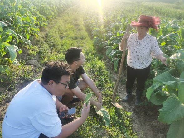 调研队还深入当地农户家中,与农户交流、学习,并了解他们遇到的实际问题与需求。通过与烟农的交流,我们了解到当地烤烟种植当前面临着劳动力短缺、劳动力老龄化、烟叶产量及质量受干旱及冰雹等天气灾害和病虫害的影响较大、各项成本(如劳动力雇佣成本、烤烟煤炭成本、肥料成本等)高等问题亟待解决。
