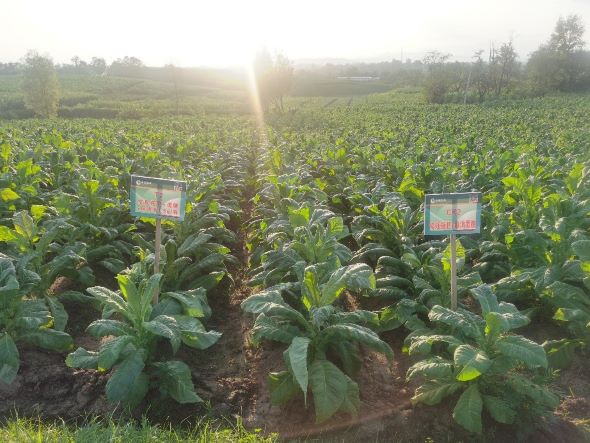 调研队在工作人员的带领下参观了示范田,示范田不同的区域进行着各类试验项目,例如不同剂型微生物制剂对烟草产质量影响、有机物料改良土壤试验、保水剂替代地膜对土壤质量及烤烟品质影响等等,真正实现了产学研融合,在为高校提供试验田地的同时,还可以给烟农提供相应的技术与理论指导,使烟农通过种植烤烟获得收益。