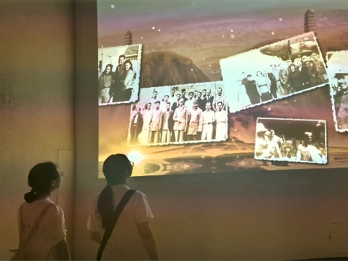 (队伍成员在延安革命纪念馆观看纪录视频)