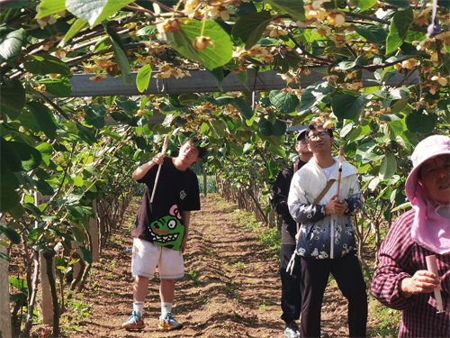 猕猴桃种植是椒生村的一项重要经济来源,猕猴桃的花期较短,由于农村劳动力相对缺乏,田园使者们和村委商定利用周末时间开展此次活动对猕猴桃进行人工授粉。除了田园使者队员外,还动员了20名志愿者一起参加,既能帮助农民完成农业劳动,又能达到“以劳树德,以劳增智,以劳健体,以劳育美”的教育目的。