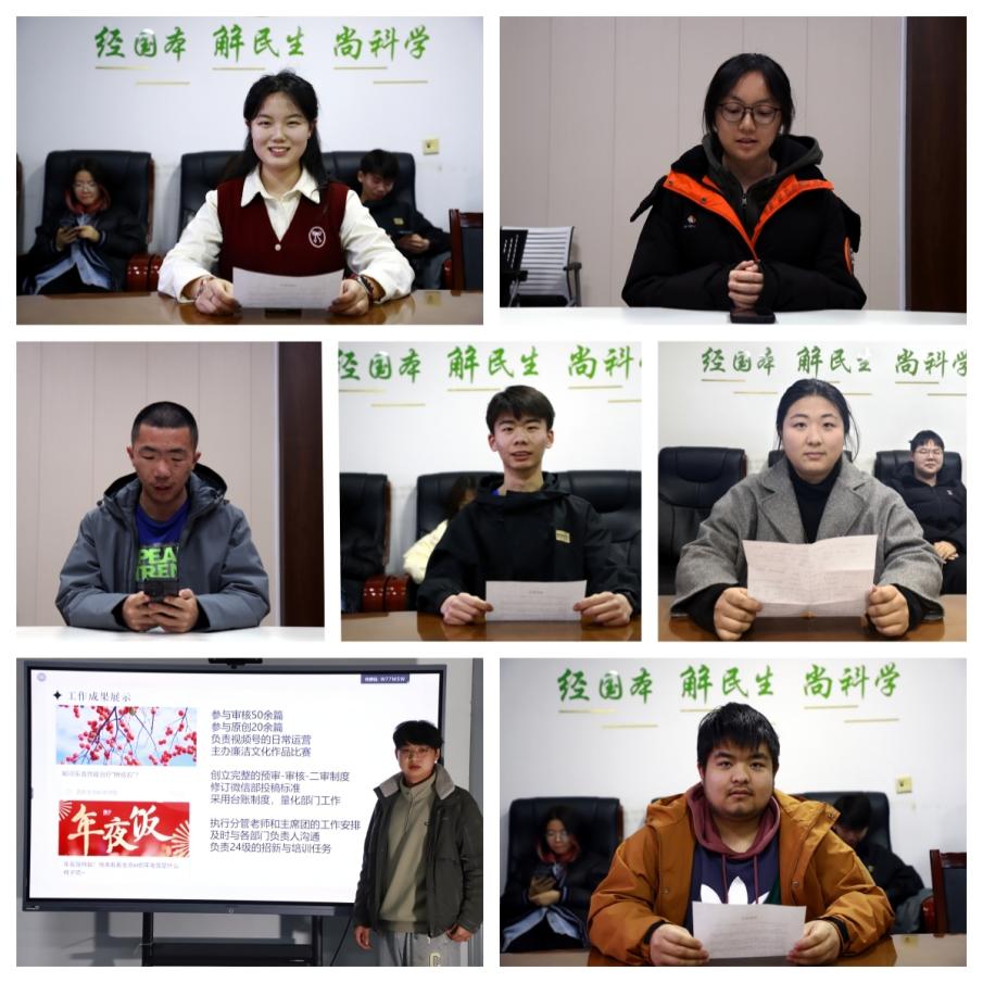 2月27日至3月6日期间,各部门员工负责人分别进行了述职汇报,涵盖综合素质拓展中心、一站式员工服务中心、组织部、实践部、创新创业部、心理健康与员工权益中心、学业学术发展中心、微信部、摄影部、采编部、技术部、易班。各负责人结合部门职责,汇报了工作成果、存在问题及改进措施,进一步明确了新学期的工作方向。