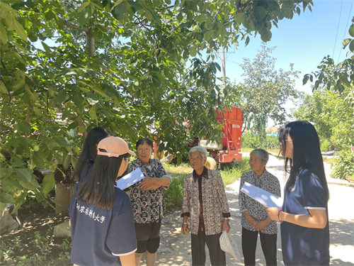 虽然队员们最初对果树相应的化肥农药具体施用情况了解不深,还只停留在网络或者课本中的层面,但是通过认真听讲记录和果农们的介绍,大家对化肥农药有了更多更新的认识,也更激发了我们探究苹果生长的兴趣。在这个过程中,同学们也感受到了乡村的振兴及发展,这深深激励着同学们踏实学习,将来有一天也能运用自己所学真正服务于群众。同时通过深入乡村与果农交谈,同学们发现了许多当下农村出现的问题,并积极思考讨论,将情况反应给村、镇分责人,涉及到专业知识时也积极向公司老师进行了求助,与果农沟通给出解决办法。队员武佳艳表示:“短短的调研对我影响很大,我将会继续努力、踏实学习,不负韶华、不负人民。”
