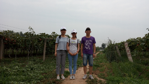 由于之前下雨地里比较泥泞,我们并没有像往常一样下地帮助合作社社长帅忠科叔叔做一些农活,而是叔叔带我们在田间小路上对不同品种的猕猴桃进行辨认,并向我们系统的讲解了猕猴桃种植过程中一系列的工作,包括除草、打药、施肥、浇水、授粉、除蕾、套袋、采摘、冬季修剪等。同时叔叔为我们介绍了猕猴桃的产量以及销售方式。随后叔叔又向我们介绍了土地流转情况、附近几个村子的猕猴桃种植情况以及杨凌的农业技术推广工作的开展情况。叔叔的讲解让我们学到了许多课本上学不到的知识,也让我们学到了如何用所学知识处理现实问题,这让我们进一步理解了“纸上得来终觉浅”这句话的含义。