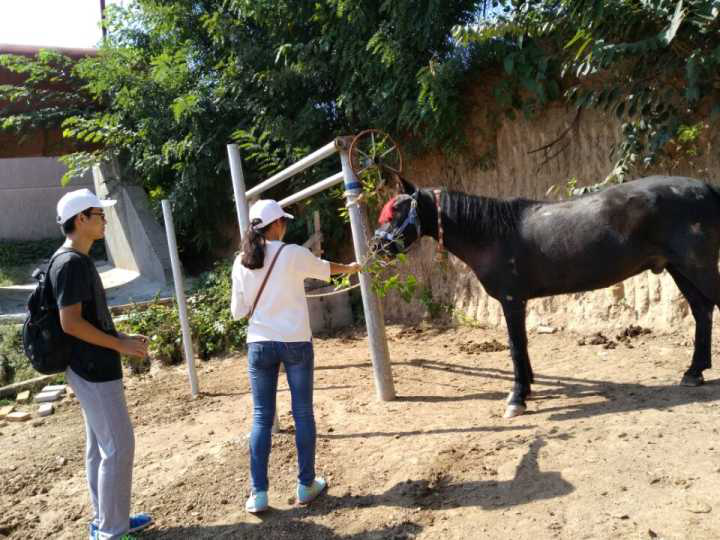 清理了果树下的草之后,负责人带着队员们来到了栓马匹的地方。队员们将杂草抱到地方后,马儿看见了新鲜的草,就撒着欢儿跑过来埋头吃草,看着马吃的那么香,队员们心里也是满满的成就感,一早上的疲劳也消失了。