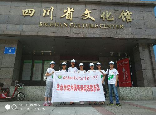 在有了之前春熙路街头问卷调查的基础下,调研队按照行程提前联系了木偶戏的负责人。怀着一丝紧张和期待,在电话接通之后,时间似乎凝固了,队员们屏住了呼吸,惴惴不安地等待着队长与负责人的交涉结果。最后成员们得知木偶戏团队现在外地进行演出,无法接受采访。虽有遗憾,但好在负责人表示愿意与我们进行交谈。在得到了同意之后,调研队马不停蹄地前往四川省文化馆,到达了与其约定好的木偶剧团。
