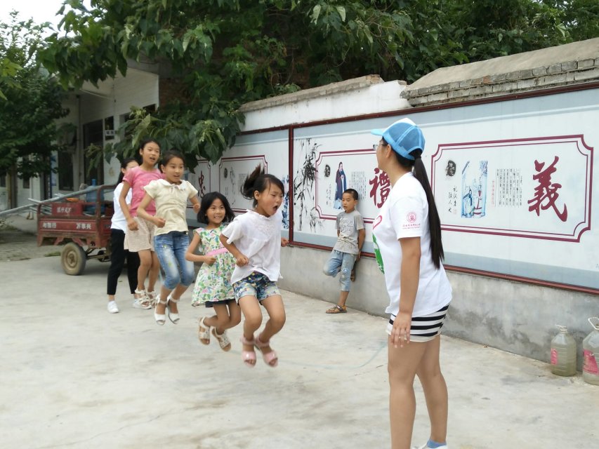 为使孩子们拥有一个健康快乐的暑假,并使他们意识到运动的重要性,7月15日上午,暖阳支教队的志愿者们来到蒋周李村,与当地小朋友们一起,举办了跳长绳和打篮球两项活动。