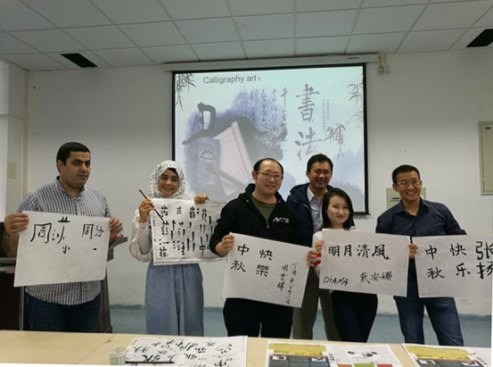 活动伊始,到场同学依次作自我介绍,观看西农宣传纪录片,共话西农,表达出对“留学西农”的幸福体验。接下来陈晓文师兄的魔术表演瞬间点燃现场火一般的热情,周云横师兄的书法艺术更是将中国文化热推向高潮。别出心裁的游戏互动,让同学们在轻松娱乐的同时感受着多元文化的开放与包容。活动接近尾声,一张张合影留念将不同国别、不同民族、不同信仰但同样热爱与享受文化盛宴的员工们的心紧紧连在一起。