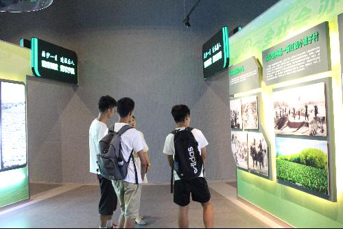 7月20日下午,“荒漠行者”服务队部分成员来到榆林市林业局,对榆林市的防风、固沙、保水工程进行了全面的了解。队员们在林业局里翻阅了榆林市近十年来的治沙文献与治沙成果。书面上看似一动不动的文字表现在沙地上却真实地生长出一棵又一棵的绿树,使榆林地区的沙土确确实实得到了改善,让榆林人民确确实实享受到了蓝天白云,青山绿水的美丽景色。结束之后,工作人员又驱车带领队员们来到榆林沙地森林公园的林业展览馆,在展览馆里,讲解人员给队员们详细讲解了榆林近几十年在治沙方面的具体措施:飞播造林、引水拉沙等。除此之外,还有许多在治沙方面涌现出的英雄人物:牛玉琴、石光银等。通过参观展览馆,队员们深刻认识到,榆林之所以能够成为全国治沙典范,不仅仅是因为榆林市采取的各项切实有效的措施,更有榆林人民锲而不舍、艰苦奋斗的精神。这些宝贵的精神筑成了一道道坚实的“绿色长城”。