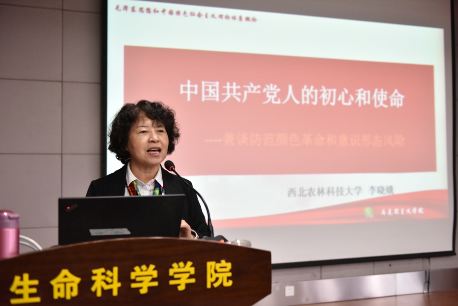 李晓娥从中国共产党人初心使命及科学内涵、初心和使命关乎党的生死存亡、中国共产党新时代的历史使命和加强课程思政建设打好意识形态保卫战四个方面进行报告。报告中她引用国民党的失败史,苏共的成功与失败,中国共产党永葆青春的事例阐释了初心和使命的重大意义。同时,告诫大家作为高校师生面对国际、国内复杂多变的形势,我们要严守意识形态领域的阵地,防止军事帝国主义联手经济帝国主义、文化帝国主义对我们的夹击,防止颜色革命,加强党建,加强课程思政建设,打好意识形态保卫战,加强使命意识教育和祖国意识教育,不忘初心、牢记使命,加快世界一流农业大学建设,为国家培养更多的尖端农林人才,为实现中华民族伟大复兴的中国梦而努力奋斗。