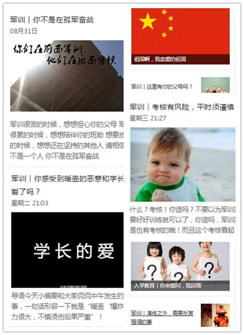 军训其实没什么担心的,你有父母,有老师,有教官,有学姐学长,有同学……只要仔细看看,你会发现许多人在你身后为你护航。