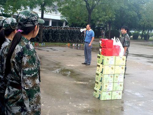 9月8日上午,党委书记化小峰、党委书记员工工作助理徐海带上“礼物”对辛苦训练的教官与新生送去公司的慰问与关怀。“军训累不累?”“不累!”简短的对话展现了生命学子不怕吃苦的精神与激情,化书记说到:“我们正年轻,就应该有这样朝气蓬勃的精神面貌!相信大家在经过十多天的军训磨练之后,会以更好的姿态迎接大学的挑战!能够更加自律、从容的规划自己的老员工活!用心军训的员工也将会收获更多!”