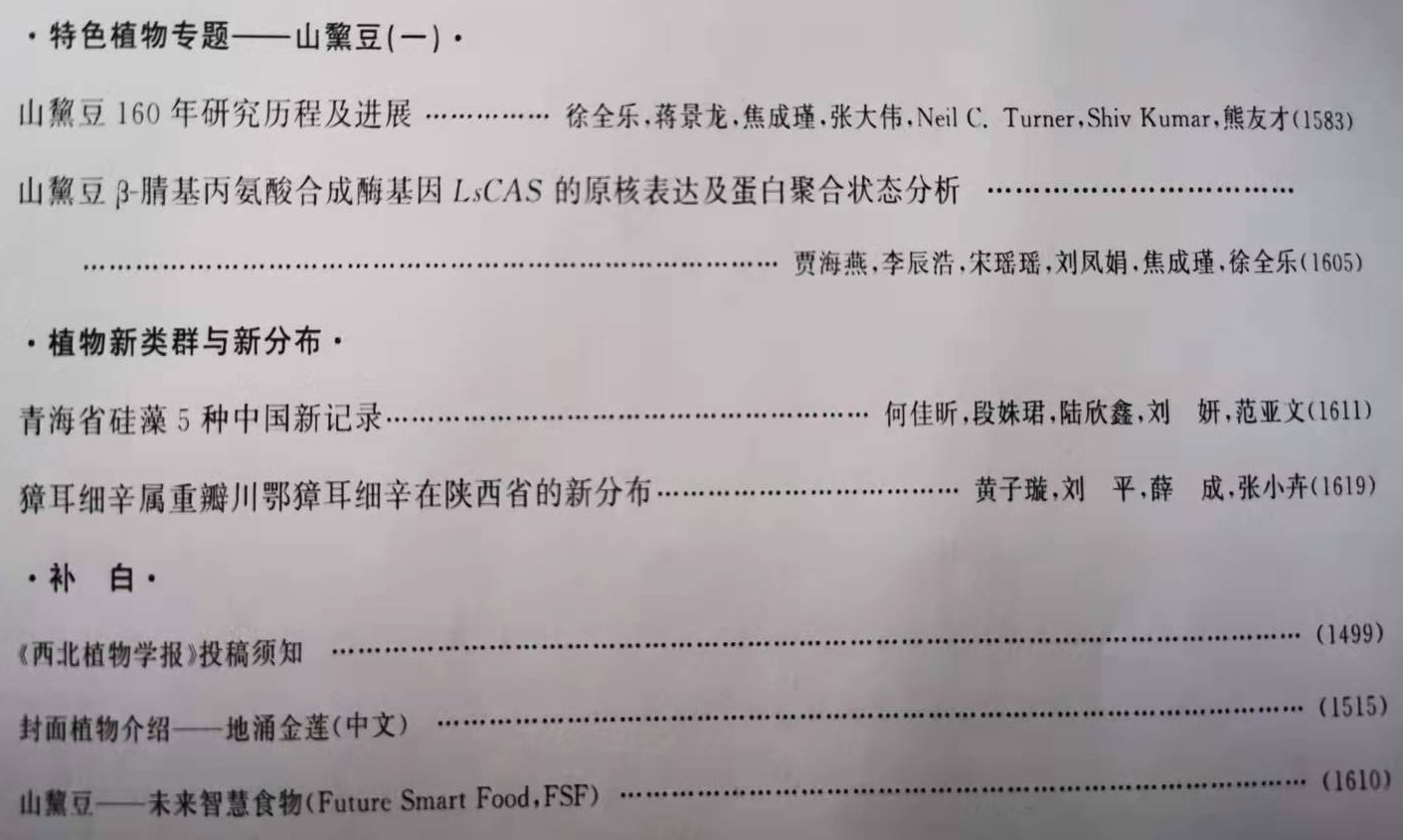 经过专家审稿、编辑部“三审三校”后,山黧豆专栏于第九期首发两篇文章。其中,best365中国官网徐全乐为第一作者,兰州大学熊友才教授为通讯作者发表长篇综述,对山黧豆160年研究进行了回顾和展望。陕西理工大学蒋景龙,天水师范公司焦成瑾,兰州大学张大伟,澳大利亚技术科学与工程研究院院士、西澳大学Neil C. Turner教授,国际干旱地区农业研究中心(ICARDA)豆类育种专家Shiv Kumar教授共同署名。