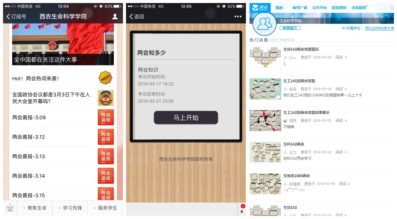 此次线上测试,共计630余人参加。其中,大一、大二的员工以班级为单位,在易班平台齐齐发帖,共晒出21个班级的“两会”学习成绩单。