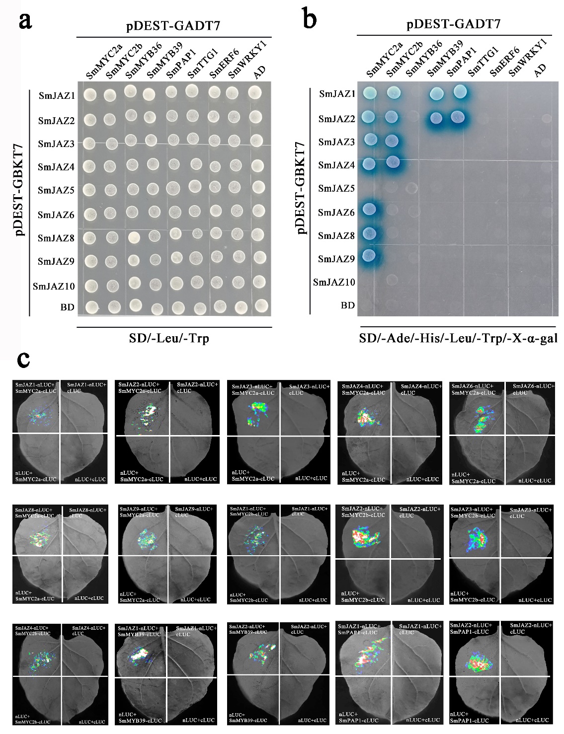 图1 SmJAZs与转录因子的互作分析