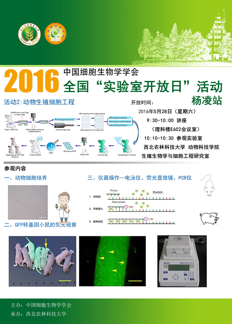 参观内容:动科公司生殖生物学与细胞工程研究室分子间的仪器设备;观察显微镜下的动物细胞;观察发绿色荧光的转基因小鼠;简单的动手实验。