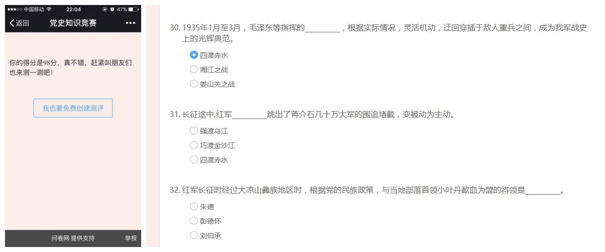 在“两学一做”学习教育,和全面推进中国特色社会主义建设事业、实现中华民族伟大复兴中国梦的新的长征中,需要引导员工党员奋发图强砥砺前行,继承和发扬长征精神。公司组织员工党员干部在带领党小组成员开展自主学习的同时,积极创新形式,开展“重走长征路、感恩未来行”长征答题活动,同时从“长征开展的历史背景、长征途中的重大事件”等多个方面自主命题,举行线上长征、党史知识测试,以引导员工党员在答题过程中温习党史基本知识,深入理解长征内涵,在“你追我赶”的学习环境中营造学有所思、思有所成的良好氛围。同时,根据党员线上测试成绩,对理论基础较差的同志予以帮扶,旨在从长征精神中汲取营养,全面深化“两学一做”学习教育。