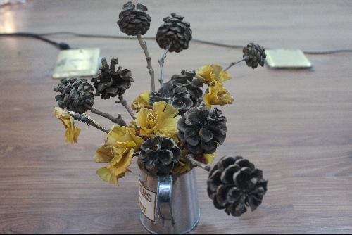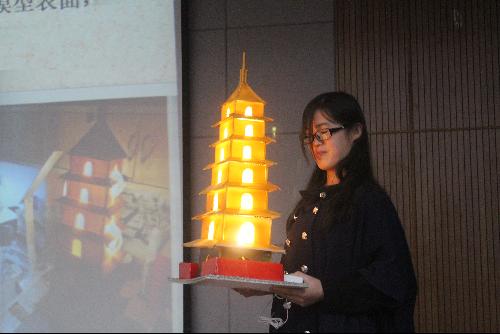 参赛同学发挥奇思妙想,用各式各样的废弃物制作成了美观实用的精美物件。用纸板、塑料瓶、旧牛仔裤制作成笔筒、收纳箱、插花瓶等极具实用价值的小作品;用废纸、易拉罐、松果、一次性筷子制作了灯罩、花、木屋、纸艺大雁塔等更具有观赏价值的艺术品等;还有把破蚊帐做成婚纱的奇美创意。每支队伍纷纷诠释了自己作品的寓意,自己对“变废为宝”活动的实践上的理解以及自己的美好设想。“三千世界”队制作初想就是“ 将废纸卷成卷儿可以有效地减少废纸所占的体积,节省了空间,做到了废纸的再利用和空间的有效利用。”“西盟”队发出了希望“大家都能够爱护保护环境,积极的变废为宝。为我们的生活和环境增添添一份生机与活力。”的号召。“画皮新娘”队的女孩展现的婚纱“愿天下女孩都嫁给幸福”,选手们的精彩表现为观众奉献了一场生动风趣的视听盛宴。