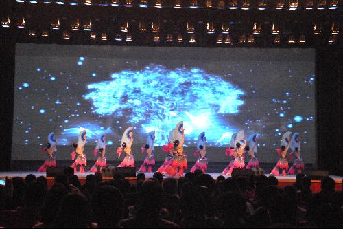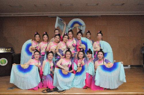 当音乐响起,公司舞蹈队员风姿绰约,台下掌声阵阵。音乐缓缓地泻出,队员们的舞姿流畅、优雅,深有一种柔美气质。观众被队员们的每一个优雅转身、每一次展扇收扇、每一段摇曳轻步深深吸引。