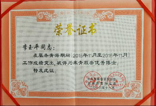近日,中组部共青团中央第16批博士服务团赴青工作圆满结束,公司援青干部李玉平同志被青海省委组织部、共青团省委授予第16批来青“博士服务团”“优秀博士”荣誉称号。