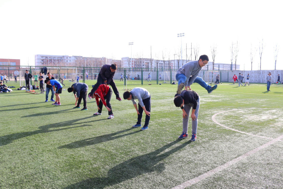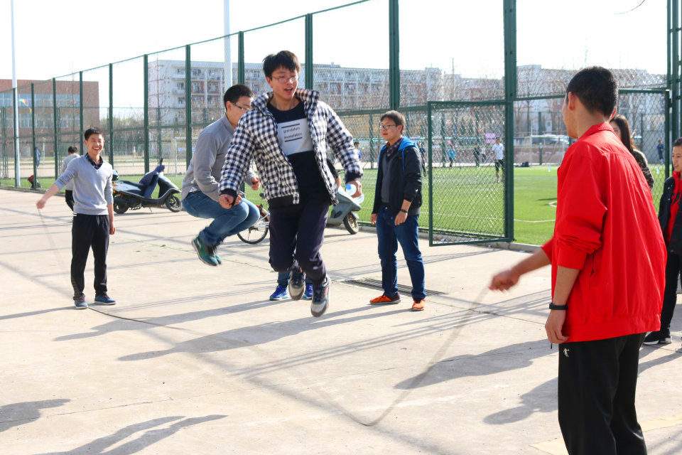 最能考验团队合作的项目便是木履争先和三人四足了,同学们各个全神贯注,生怕自己拖了大家的后腿,一声声嘹亮的口号回荡在小足球场的上空。展现男生力量的跳背接力随后登场,男生们保持姿势,排成一列,默契配合,连续漂亮的跳跃,引来了阵阵和彩。