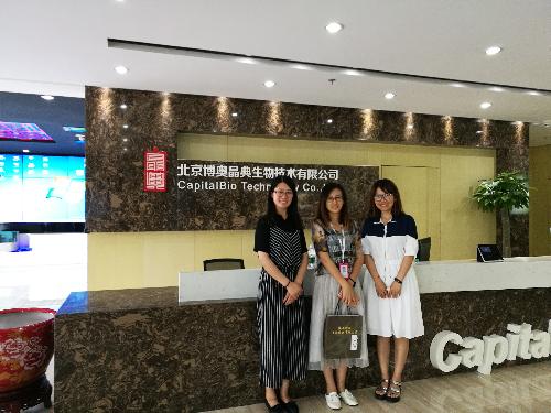 北京博奥晶典生物技术有限公司是公司的就业实习基地之一,在走访座谈中,陈悦、张红云了解到北京博奥晶典生物技术有限公司的用人需求、岗位职责以及对实习生的相关要求,该公司人力总监房晶对今年暑期未能安排实习表示遗憾,并作出解释:“寒暑假时间太短,公司实验室培训扎实,一两个月满足不了培训要求。”她提出,如若公司导师同意并且员工自己有意愿和充足的时间,也可以将自己的毕业论文或者毕业设计拿到公司做。公司很愿意培养新员工,但也希望同学们能够实习的时间相对长一点,半年以上最好,公司会很欢迎这样的员工毕业之后直接留下工作!并表示愿与公司建立更加广泛稳固深入的合作、协作关系。