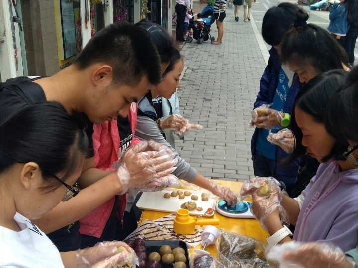 公司与恩典烘焙坊合作,完成校徽月饼的制作。从调馅、做皮、包馅,到最后的模具定型,都是由同学们亲手制作。想到老人们能够尝到这充满爱心的月饼,同学们的脸上都洋溢着快乐的笑容。