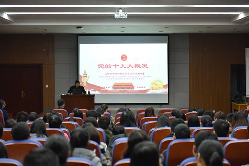 他强调,我们应重点学习习近平总书记做的《决胜全面建成小康社会 夺取新时代中国特色社会主义伟大胜利》的报告和《中国共产党章程(修正案)》,并从 “两个重大判断”、“一个思想、一个使命、四个伟大”、“十四条基本方略”和“九个理论分析和政策指导”等方面对十九大会议内容和进行了解读。