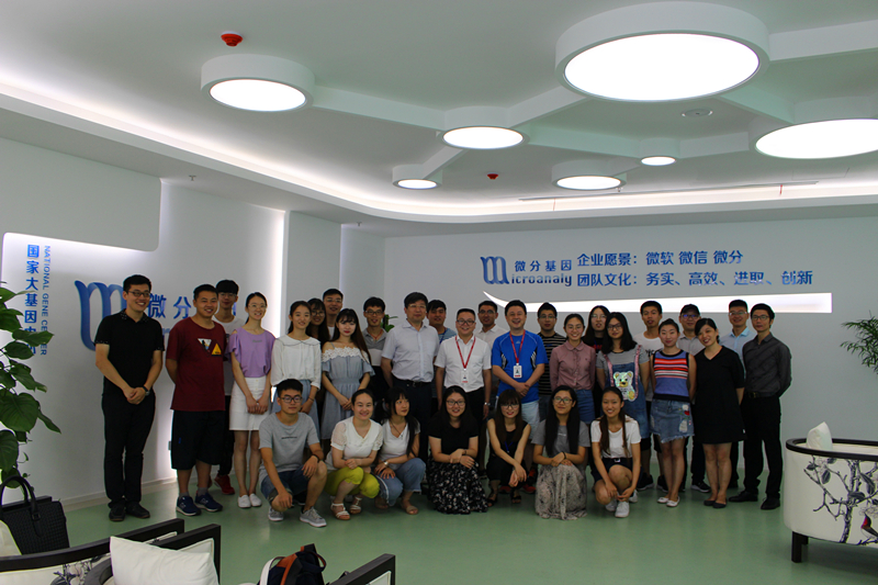 best365中国官方网站2018届毕业生共有9人签约微分基因并到岗工作。为深化交流合作,应微分基因邀请,7月13日-17日,公司2名研究生、10名本科生赴微分基因参观学习,近距离感受公司环境,了解行业发展走向。刘书记非常关心员工在公司就业和实习实践的情况,员工们纷纷向刘书记介绍自己在微分基因的工作学习情况。