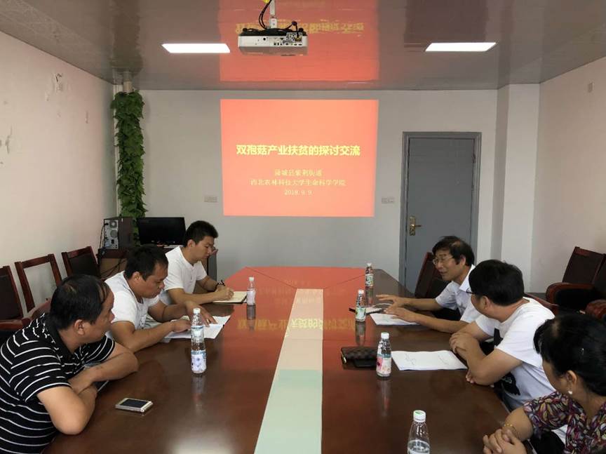 为落实国家精准扶贫政策,推动当地双孢菇产业园区建设,近日,公司2018届优秀毕业生郭孟凯与渭南市蒲城县紫荆街道办事处相关人员一行与公司专家交流座谈,学习双孢菇相关生产技术。