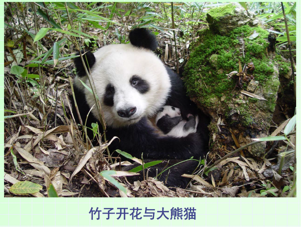 竹亚科通过展示大熊猫照片,提问“你们见过竹子开花吗?”“竹子开花大熊猫就会饿死吗?”