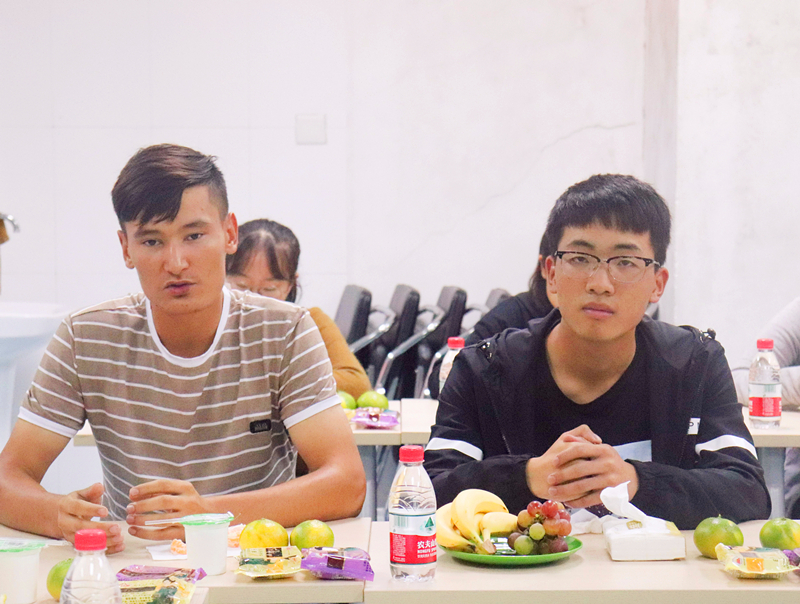 会上,同学们围绕着日常学习生活、民族团结等方面分享了自己一个月来在校学习生活的体验和感受,对未来的理想与发展畅所欲言。来自新疆的2018级维吾尔族本科生艾克拜尔·吐尔逊谈到:“由于自己的汉语基础较差,对课堂讲授内容理解比较吃力,但是老师和同学们总是耐心的解答疑问,帮助我吃透难点,让我非常感动!来到这里让我感到家一般的温暖。”2018级回族博士生潘大敏对学弟学妹们提到的学习方法、时间安排等方面的困惑给出了自己的建议。她鼓励学弟学妹珍惜大学时间,学好英语,学透专业知识,加强科研训练。