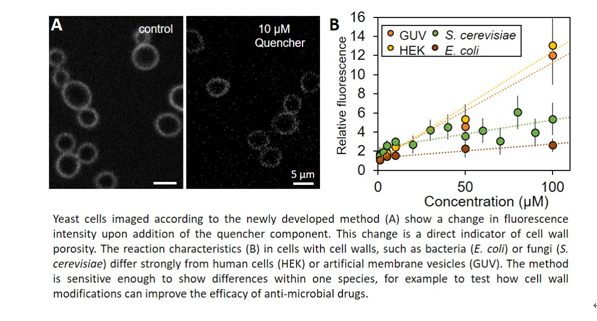“Novel tool to quantify cell wall porosity relates wall structure to cell growth and drug uptake”的文章为我们介绍了一种新的细胞壁结构分析方法——通过荧光显微成像技术测定构成细胞壁的生物分子间孔隙大小解析复杂的细胞壁结构。应用该方法分析病菌的细胞壁孔隙结构,有助于我们了解宿主免疫活性物质或外源药物渗透病菌细胞壁的分子机制,提高抗细菌或真菌药物的药效。该项研究的负责人Johannes Liesche副教授认为, “虽然所有的研究都是在实验室条件下进行,但是我们的结果表明这种方法可以用于新型药物的设计和筛选。”该研究结果发表于国际著名学术期刊《Journal of Cell Biology》(影响因子8.8)。该项研究主要实验工作由硕士研究生刘晓慧完成,研究成员还包括旱区生物质能研究中心的其他老师和同学,以及德国Ruhr大学的合作者Thomas Günther-Pomorski教授。