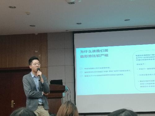 随后是张照老师通过幽默的语言和实际经历和同学们进行了职业选择、职场现状的深入探讨。现场气氛轻松、互动频繁,同学们受益匪浅,最后讲座在热烈的掌声中圆满结束。