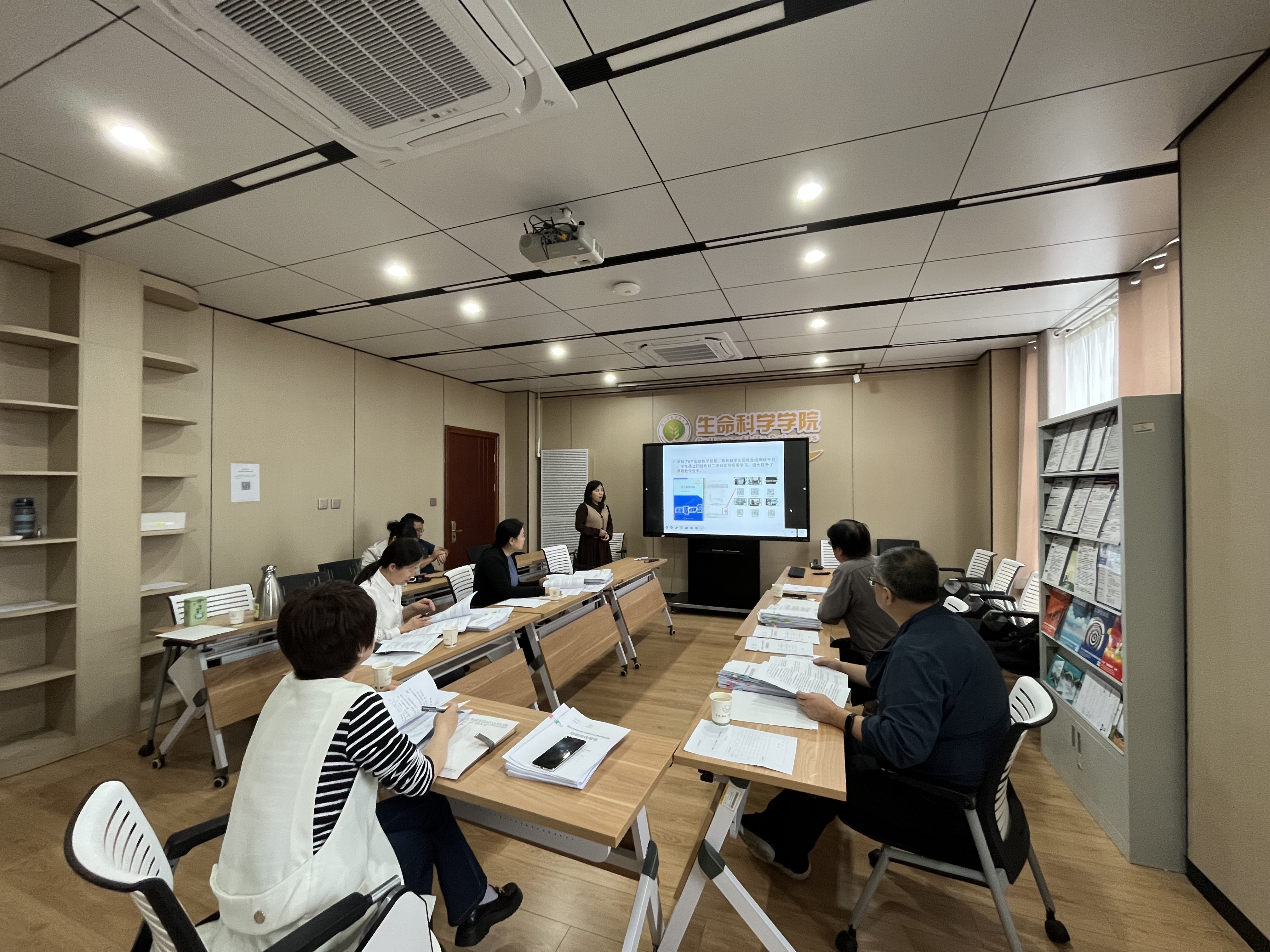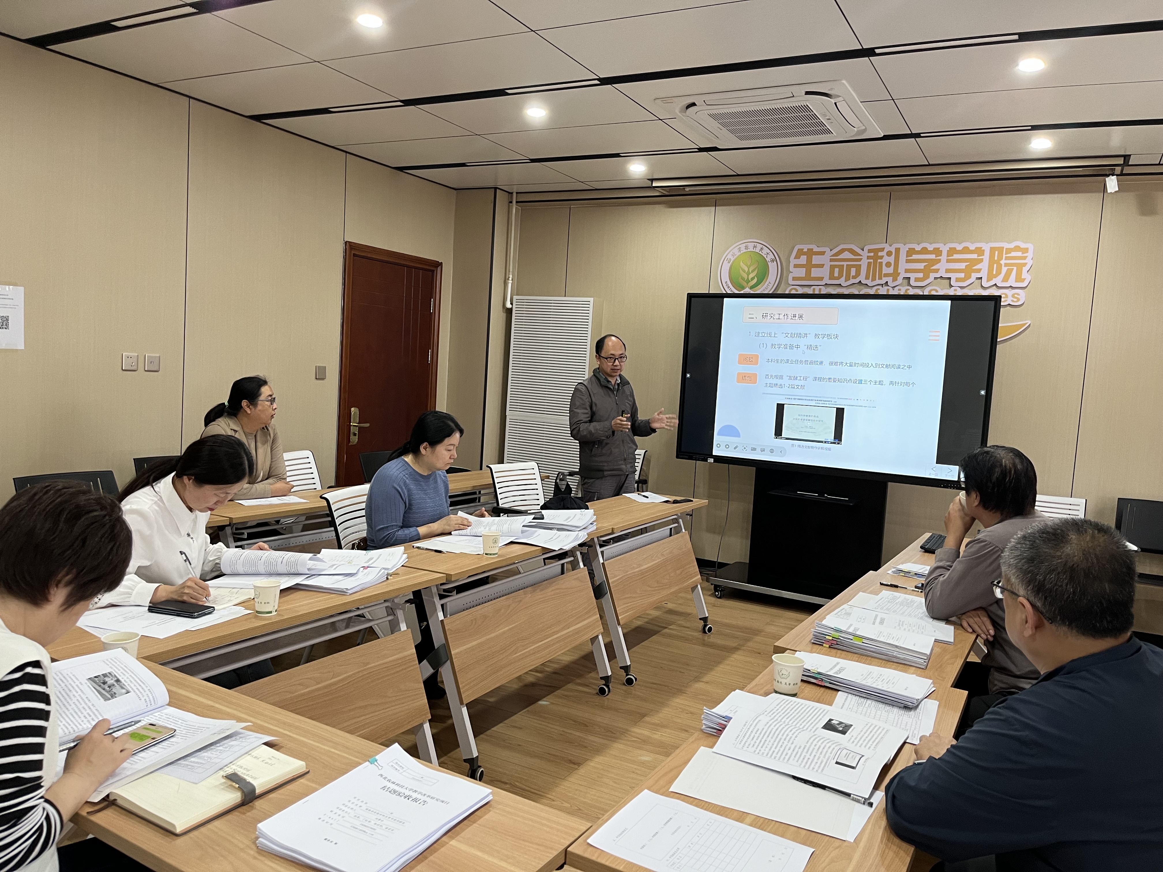 结题验收以项目立项合同书为依据,采用 PPT 汇报、专家质询的方式进行,围绕项目完成质量、取得的新成果、经费使用情况等方面展开汇报,主要包括以下14个项目,分别为:基础生物化学实验课过程质量控制体系实践研究、《普通生物学》课程混合式教学模式探索、《基础生物化学》教学案例库建设、基于“凤岗草木”小程序的校园植物数字化平台建设、化工原理实验课程在线教学资源建设 和教学内容与教学模式改革、《进化生物学》线上课程持续建设和混合式教学应用研究、发酵工程课程中设置“文献精讲”线上教学板块的改革与探索、植物学实验材料反季节使用探索、《现代工程制图》课程混合式教学改革与实践、基于工程能力和素质培养的发酵工程实验课程体系优化与实践、以生物学专业为基础的本科生国际化培养模式的研究与实践、遗传学实验教学改革研究、《生物科学综合大实验》课程建设、《基因工程实验技术》课程优化及改革实践,以上方面的研究为人才培养提供新举措、推动实验和实践课课程建设、提升混合式教学模式、提升课程教学质量、为本科生国际化培养奠定基础等方面进行探索并提出可行性举措。