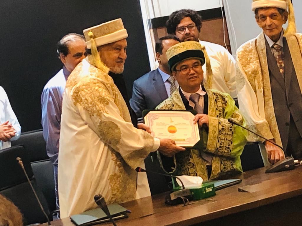 拉合尔大学理事会Muhammad Abdul Raoof主席向张立新(Lixin Zhang)博士颁发荣誉教授聘书