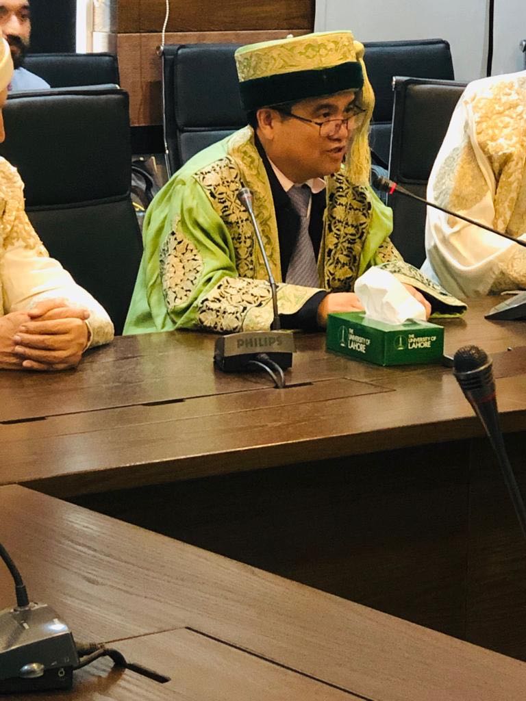 2019年4月17日上午,在公司代表团赴巴高校考察中巴农业生物资源研究中心筹备进展情况之际,在巴基斯坦拉合尔大学(The University of Lahore,UOL)校务会议室举行了公司张立新(Lixin Zhang)博士荣誉教授授予仪式。