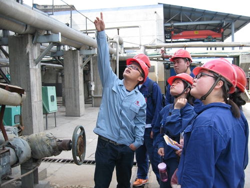 紧锣密鼓的实习内容在炎炎烈日的考验下显得尤为严峻,但相比于奔波的劳累与辛苦,实习的员工们还是更多地沉浸在对工厂的新鲜和好奇之中。“让我印象最深刻的是83米高的造粒塔,液态尿素经过它形成颗粒状的肥料。”生工133班的刘欢同学说:“亲眼看到化肥颗粒像下雪般落下来,这画面带给我不小的震撼。大家也都热情高涨,积极提问,收获颇丰。”同学们的表现也给工厂的技术人员带来了很大的触动:“我们经常面对这些设备,从来没觉得有什么乐趣。同学们过来之后,每天都十分新奇地问很多问题,让我们觉得我们的工作原来还挺有意思的。”陕化集团工作人员表示非常欢迎我们过来实习,希望保持长期合作关系。