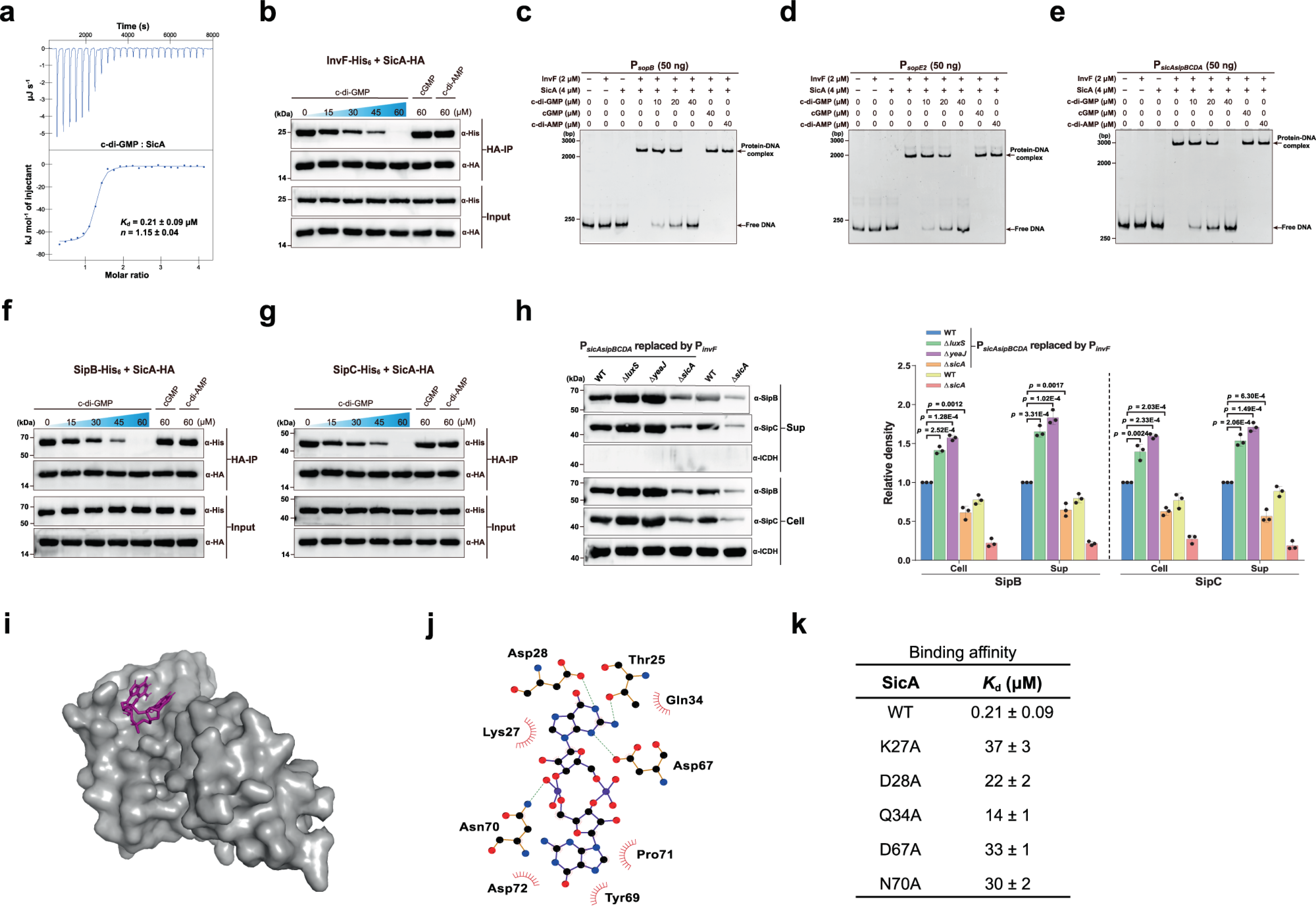 图1.c-di-GMP作用于沙门氏菌T3SS伴侣蛋白SicA抑制T3SS基因表达