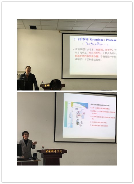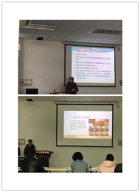 汇报中,2018年校级“课程思政”示范课程《植物学》、《微生物学》、《细胞生物学》、《生物工程设备》、《分子生物学综合实践》、《植物生理学》、《生物化学》负责人分别汇报了课程中如何将育人“思政元素”融入专业基础课和专业实验课程知识体系建设中,介绍了课程思政的设计思路与教学策略设计,以及开展的主要工作,包括如何通过教学方法改革提高育人效果,如何从问题导向切入思政元素,简明扼要的介绍了每个教学案例,以及如何在案例中融入真情实感,如何把“思政元素”做为“盐”来提高课程的“味道”等经验与体会;将公司的校史、校训教育融入到知识传授过程中,将“西农精神”和“杨凌精神”的培养融入到知识传授过程中,融入公司小麦育种专家李振声、赵洪璋院士和王辉教授的感人事迹,弘扬西农精神;生物工程设备作为工科专业课,在“思政元素”融入课程时,结合“特种设备事故案例”,“中兴事件”,“大国工匠”等案例,使员工认识到自己肩负的责任对他人和社会的重要性,从专业领域角度引导员工关注我国制造业的发展,鼓励员工从自身做起,为我国的民族产业出一份力。挖掘他们的工匠精神,例如脚踏实地、持之以恒、敬业负责、创新、精益专注等;在实验课的课程思政元素融入中采用了问题式教学法,从实验中的现象出发,引出员工们的思考,进而对其进行专业知识教育,同时实现科学素养和科研品质培养的育人目的。