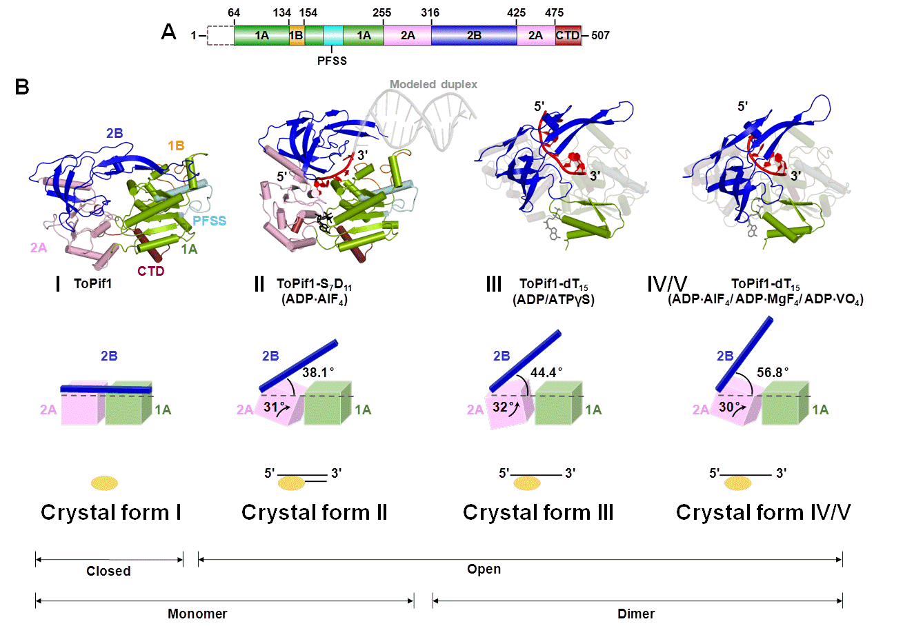 5.Structural and functional studies of SF1B Pif1 from Thermus oshimai reveal dimerization-induced helicase inhibition