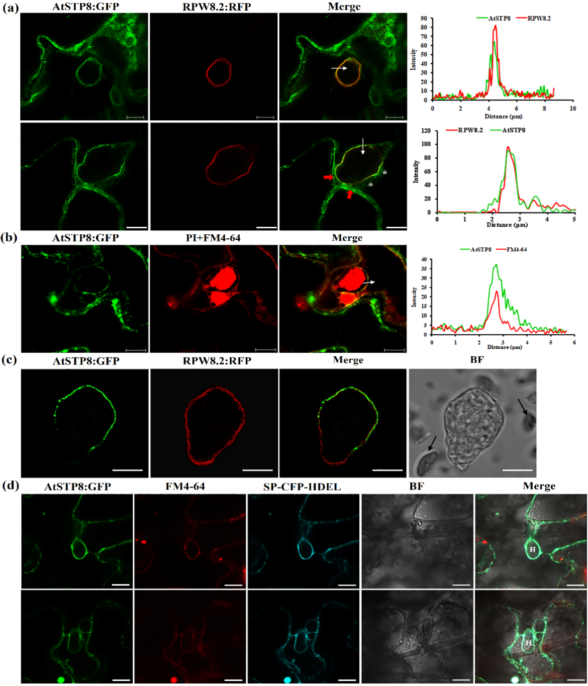 图1. AtSTP8定位于外吸器膜EHM