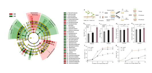 2021年11月,韦革宏教授研究团队在《Microbiome》在线发表研究论文。揭示了患根腐病黄芪根际及根内的微生物群落特点,并依据患病黄芪根际显著富集的细菌构建了一个具有防病功能的人工合成菌群。研究人员分析了患根腐病黄芪根系的差异菌群,并从黄芪根系分离了相应的细菌,分别构建了患病黄芪根系富集菌群与下降菌群,通过植物实验发现患病黄芪根系的富集菌群可以降低黄芪根腐病发病率。通过对含有13株菌的富集菌群简化,最终得到4株菌的简化菌群,植物实验显示这4株菌构建的简化菌群仍具有等同于富集菌群的抗病能力。进一步研究发现,简化菌群通过高丰度细菌抑制病原菌与低丰度细菌诱导宿主植物ISR而实现防控黄芪根腐病的目的。本研究不仅对于深入理解患根腐病黄芪的根系微生物群落变化有重要意义,也为黄芪根腐病的生物防治提供了新的视角,具有较强的应用潜力。