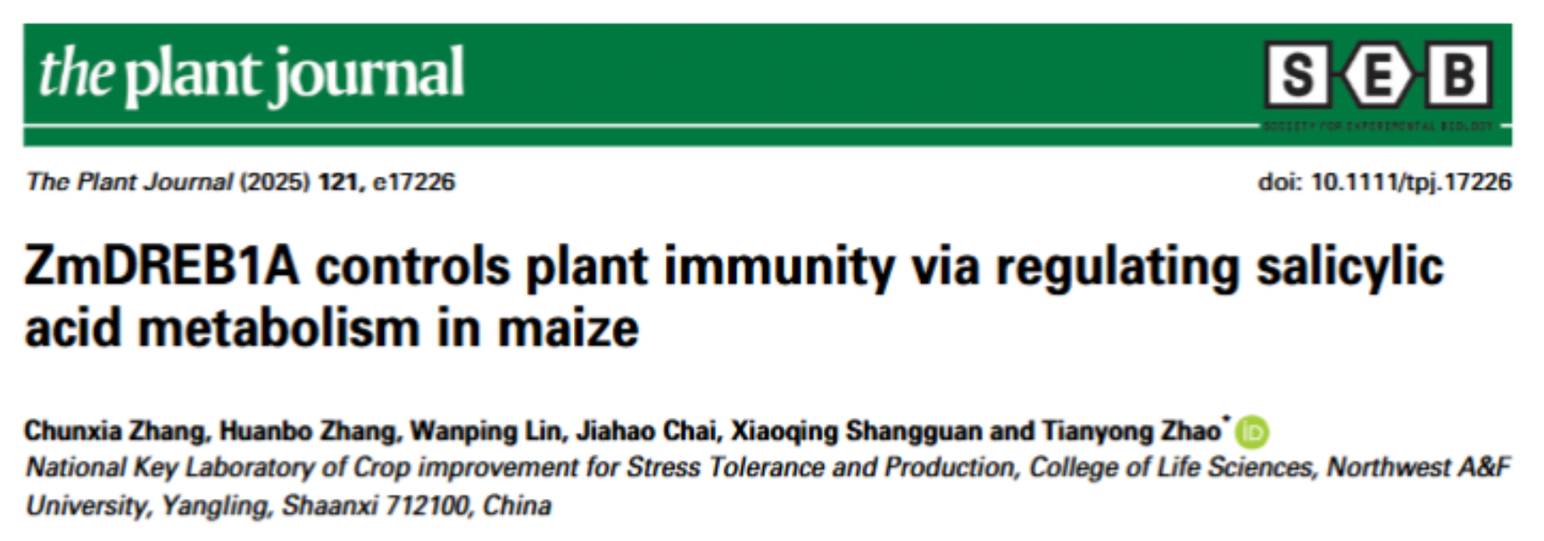 近日,该团队在The Plant Journal发表题为“ZmDREB1A controls plant immunity via regulating salicylic acid metabolism in maize”的研究论文,发现玉米DREB1A通过调控水杨酸代谢负调控植物抗病性。