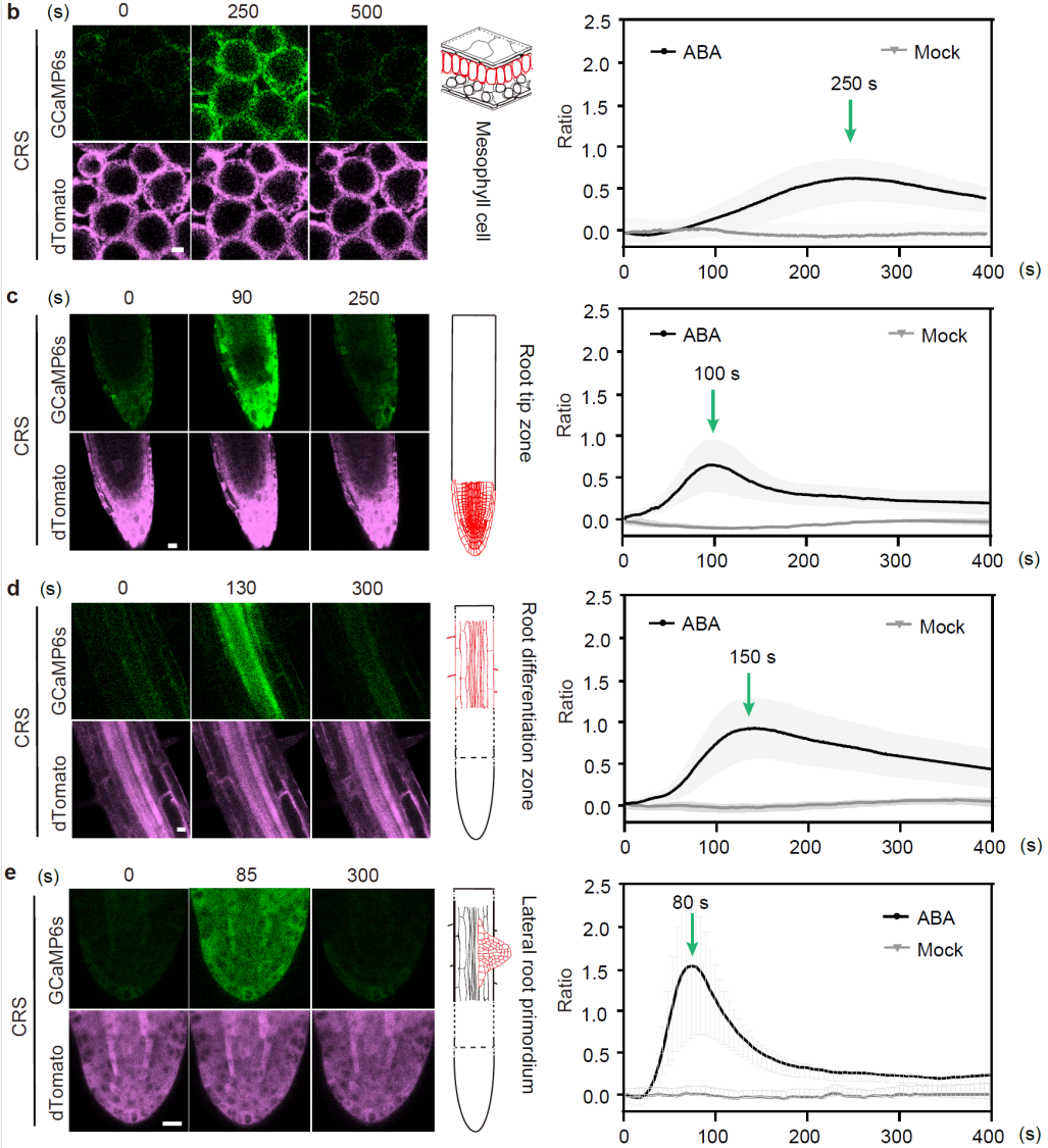 (CRS钙指示剂在植物叶肉细胞及植物根系不同组织细胞中检测ABA诱导的钙变化)